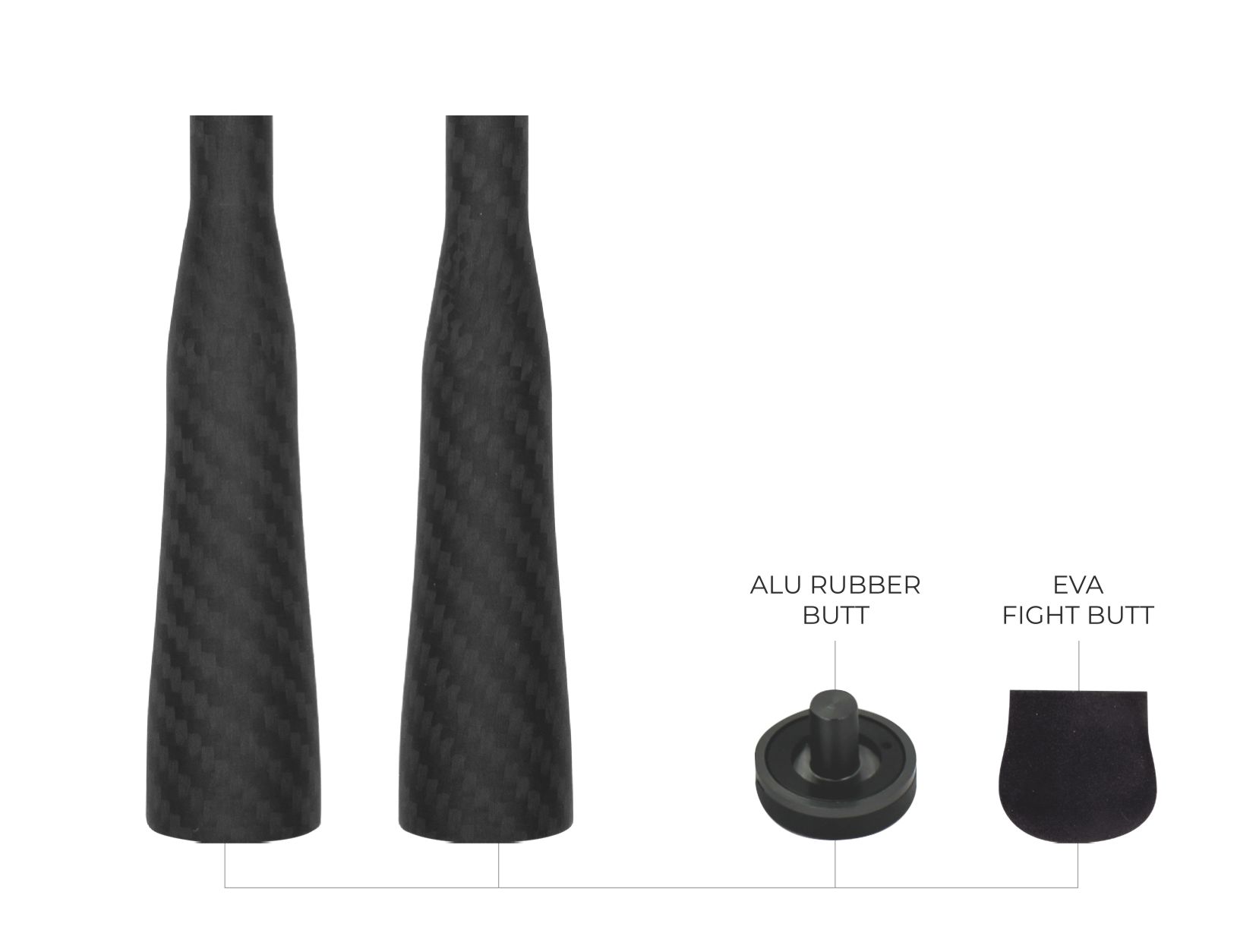 I Monocoque Carbon Handle possono essere abbinati sia ai tappi Alu Rubber che agli EVA Fight, modificandone significativamente estetica e funzionalità.
